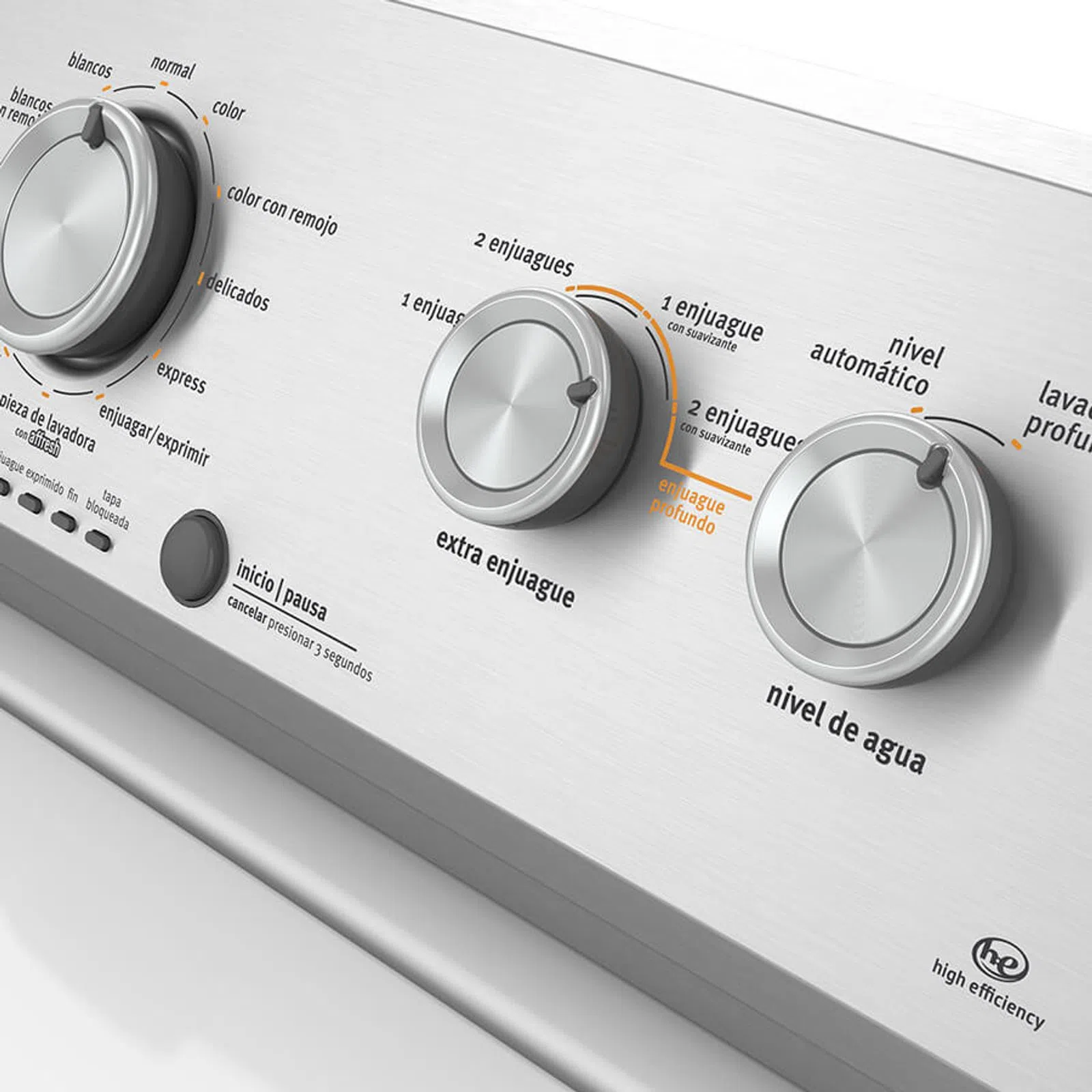 Sistema de lavado de Alta Eficiencia HE, bajo consumo de agua.